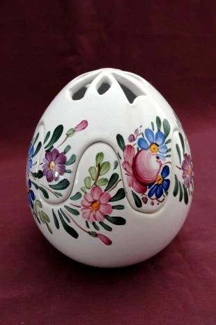 Ennek a tojás bonboniernek az különlegessége, hogy csak egyféleképpen illik össze a teteje az aljával. A tetején nagyon szép áttörés található.