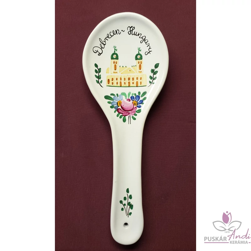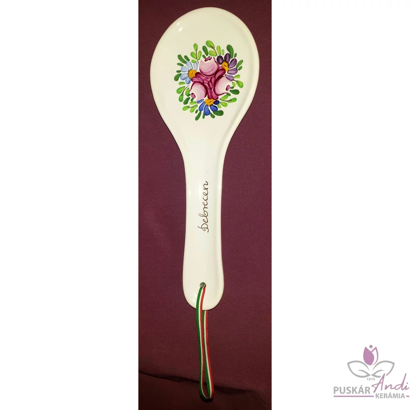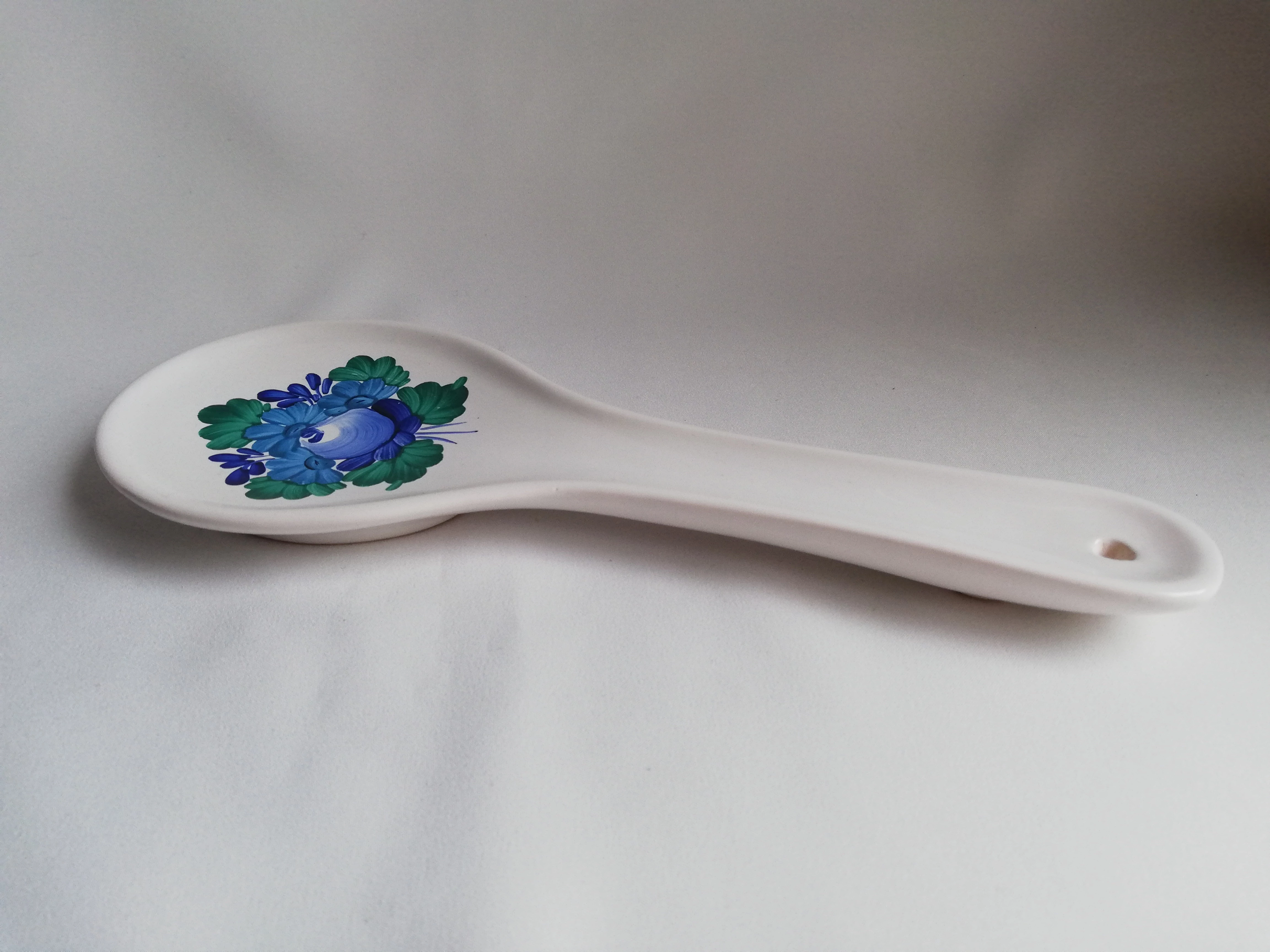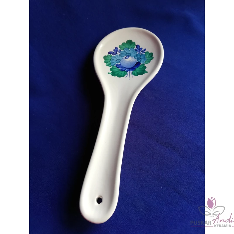 Kézi festésű kerámiából készült fakanál pihentető / fakanáltartó. Főzéskor ebbe helyezzük bele a fakanalunkat, hogy ne legyen maszatos a konyhapult, vagy a fedő teteje.