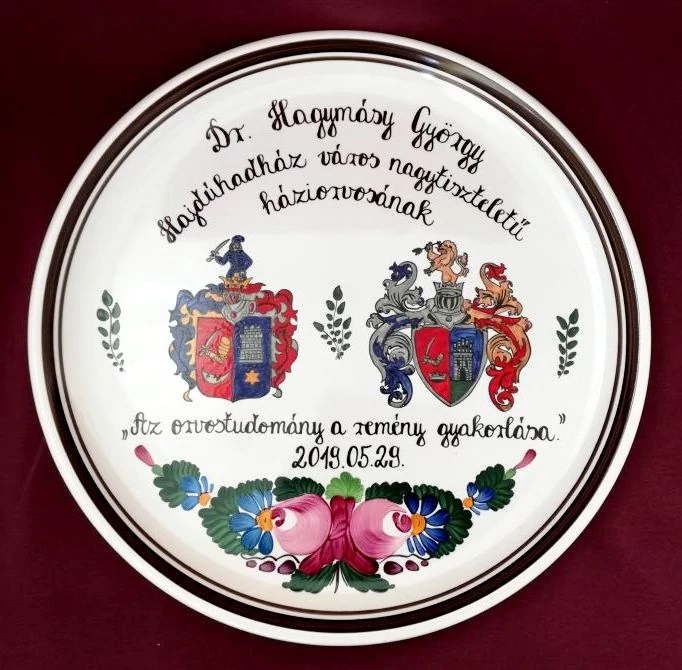 Hajdúhadház régi és új címere pizzás fali dísztányéron