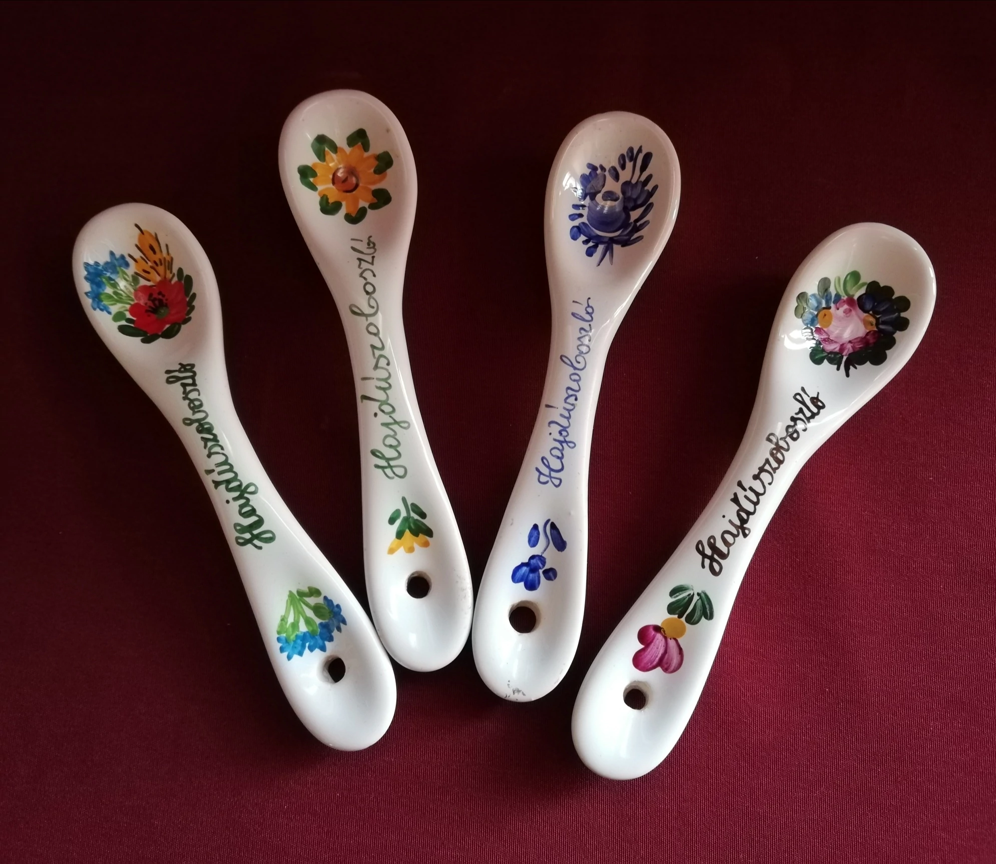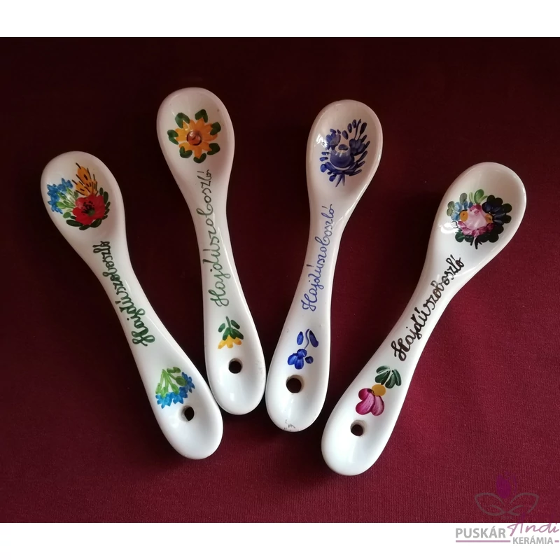 Kézi festésű kerámia pici kanál. Válasszon hozzá virágmotívumot vagy a magyar címert!