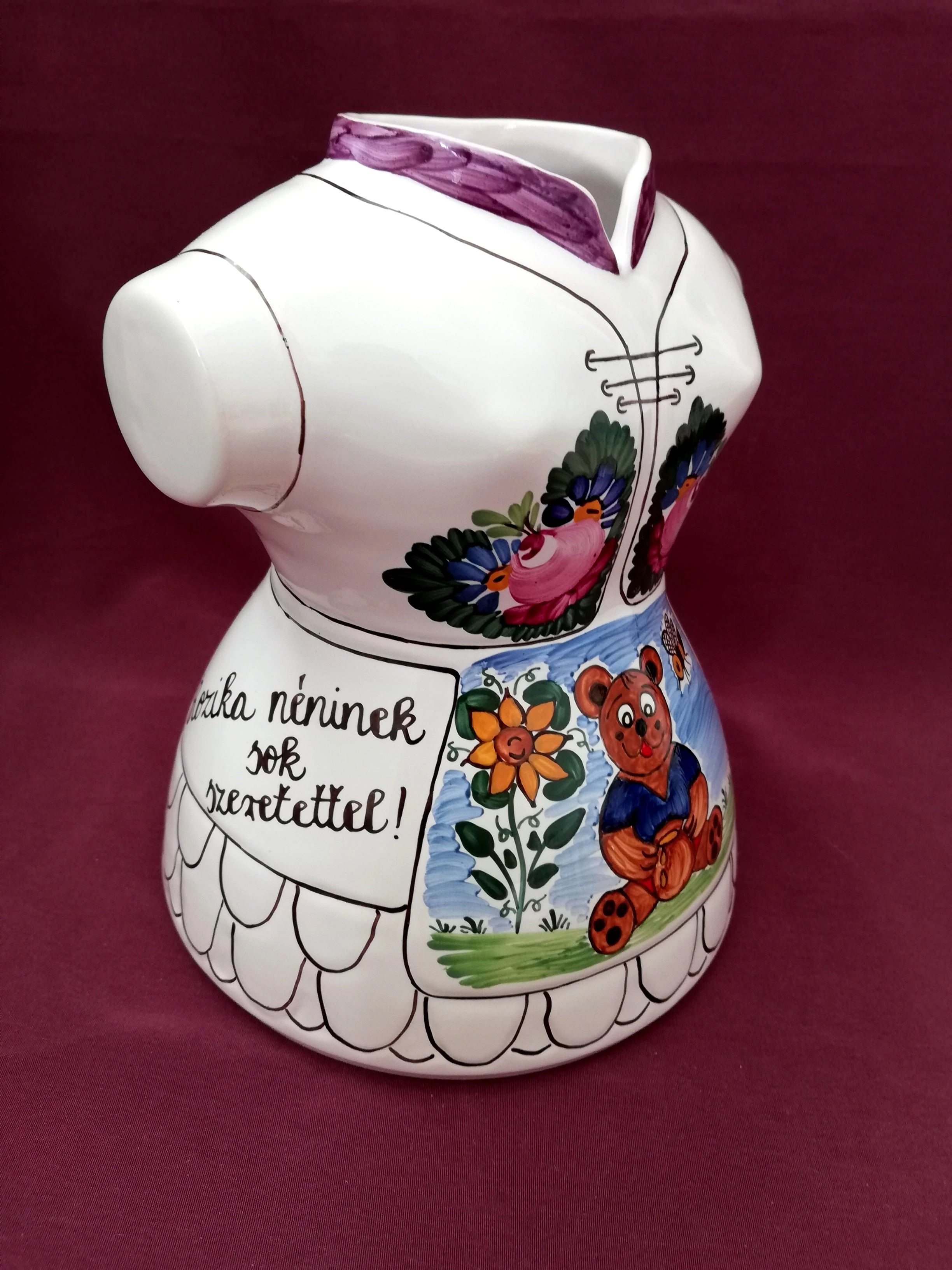 Bálint fiam bölcsödei kisgyermeknevelőjének készítettem ezt az egyedi kerámia vázát. Nagyon meghatódott, amikor átadtuk neki, igazán tetszett neki, ez egy örök emlék!