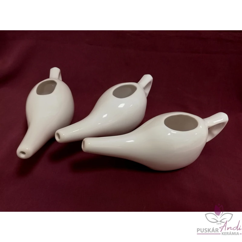 Ha a kanna megfelelő helyzetben áll, a fejünket megfelelő szögben döntöttük oldalra, a kanna szára hézagmentesen illeszkedik az orrnyílásba, a beáramló víz akadálymentesen áramlik kifelé a másik orrnyíláson.